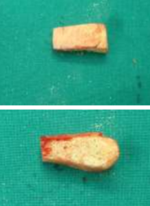 Στη συνέχεια υποβλήθηκε σε παλαμιαία οστεοτομία κερκίδας, ανοικτής σφήνας, τοποθέτηση τριφλοιώδους λαγόνιου αλλομοσχεύματος και σταθεροποίηση της οστεοτομίας με πλάκα κερκίδας τύπου Τ.